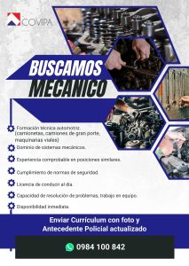 • Experiencia mínima de 3 años en mecánica pesada