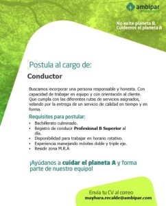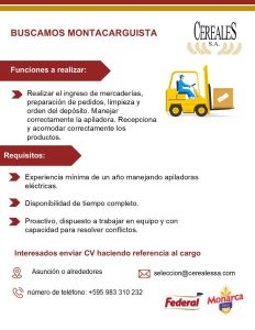 • Manejo de montacargas (no excluyente)
