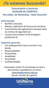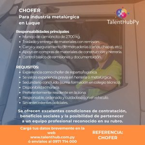 📍 Zona: Asunción y Gran Asunción Requisitos: