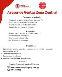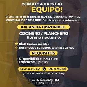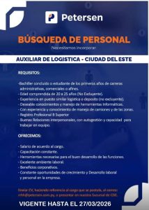 Oferta de trabajo del dia viernes 27.03.26 – Paraguay